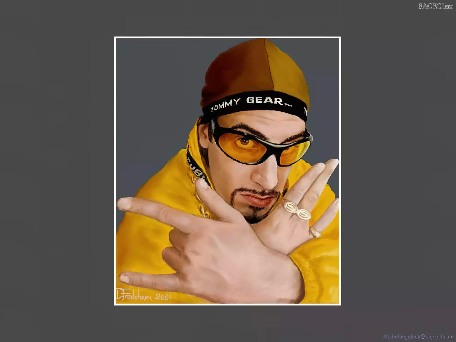 Sasha Baron Cohen, żółty strój Sasha Baron Cohen, zdjęcia Sasha Baron Cohen, gruby łańcuch Sasha Baron Cohen, ali g złoty strój, Sasha Baron Cohen, okulary Sasha Baron Cohen, borat Sasha Baron Cohen, niebieski dres